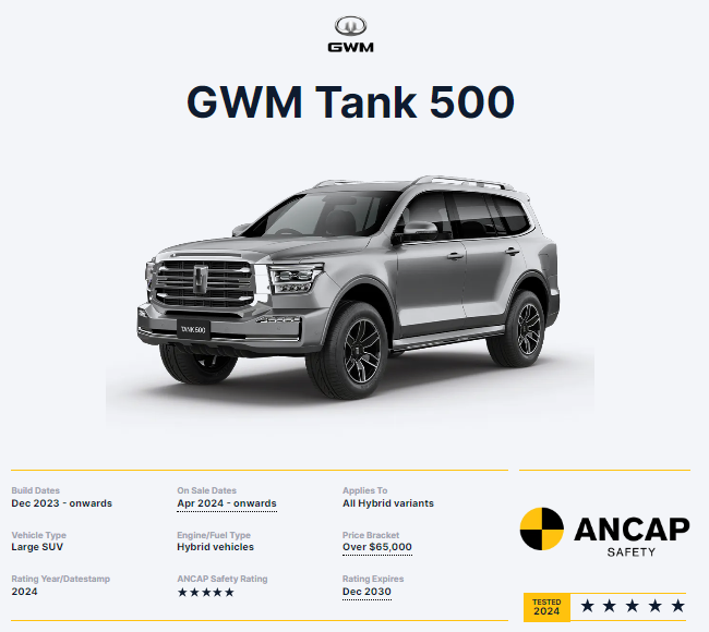 تانك 500 هايبرد تحصل على تقيم 5 نجوم في اختبارات ANCAP
